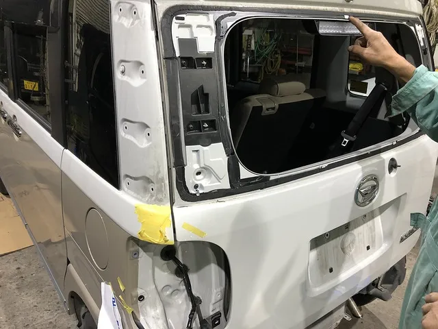 八戸市 八戸市 板金塗装 ムーブキャンバス リヤガラス リヤバンパー ゲート 修理 交換 谷川自動車