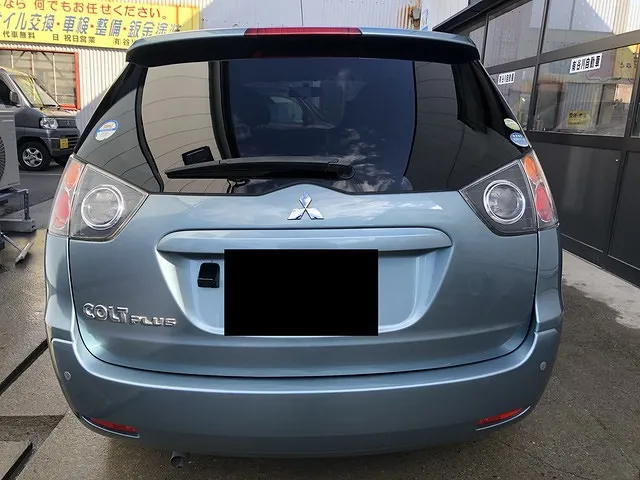三菱のコルトプラスのゲートとリヤバンパーをリサイクルパーツに交換して、リサイクルパーツの細かい傷は塗装するという事例です