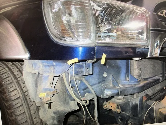 トヨタのハイラックスサーフのフロントバンパー交換と右のフェンダーとフロントのバンパーのリインホースメンの鈑金修理事例です
