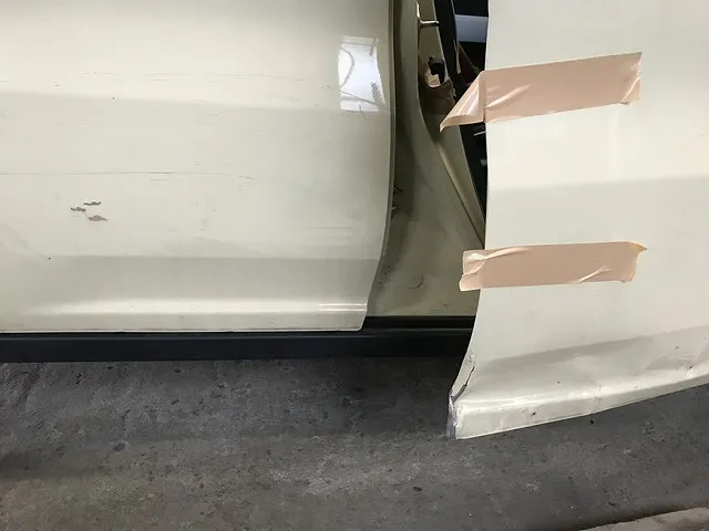 そのためフロントピラーを引っ張ったり、調整してドアの建て付けを見るのですが、その作業はミリ単位の作業です