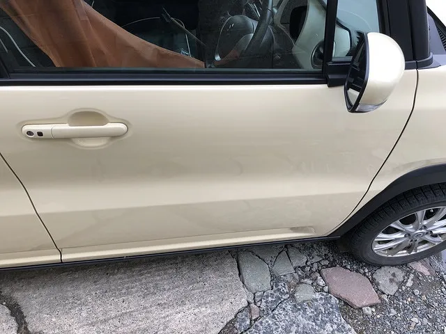 八戸市 板金塗装 EKクロススペース 左側のドア2枚、サイドスポイラーの擦り傷