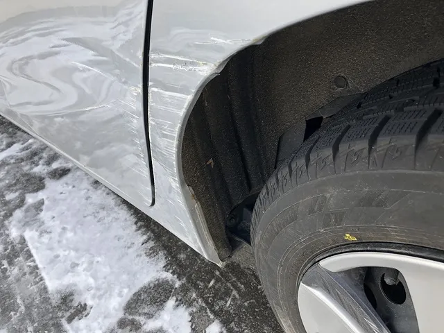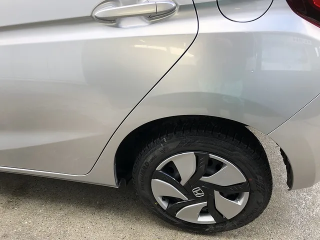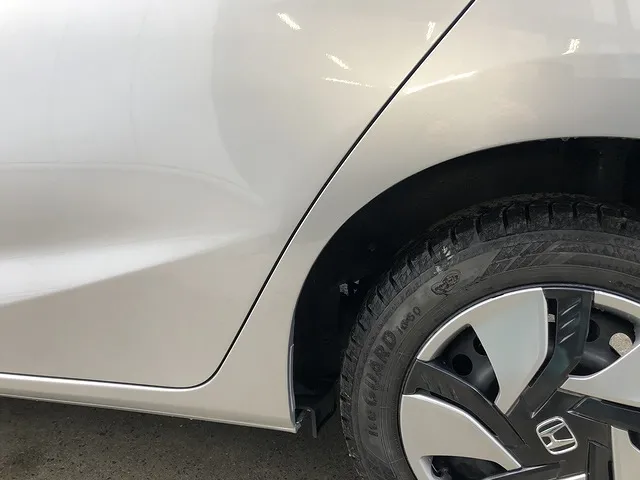 ホンダのフィットの左後ろのドアとクォーターパネルの傷の修理とホイールカバーの交換の修理事例です