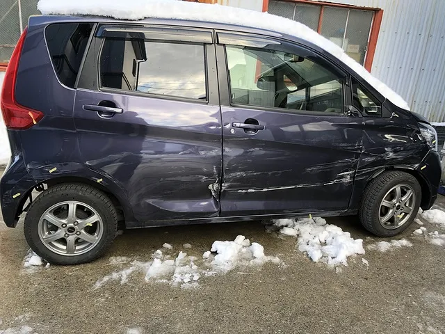 八戸市 板金塗装 EKワゴン 右側面を広範囲に損傷してしまった事例