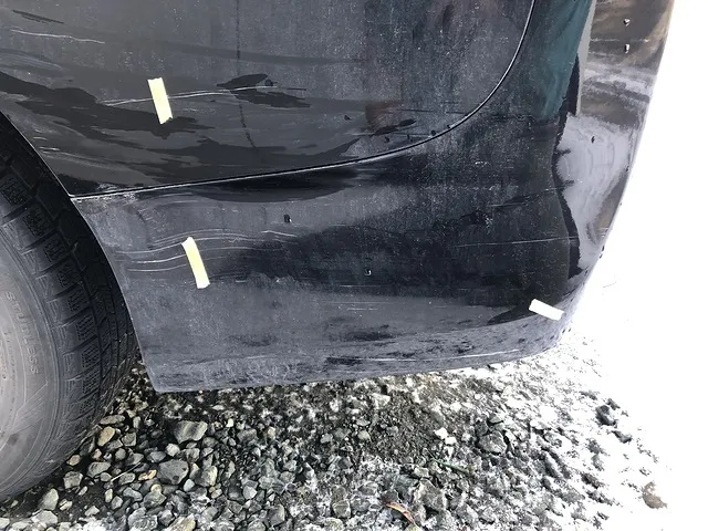 作業内容はリアバンパー修理、クォーターパネルの修理、リアバンパーを外した部分のアウターパネルの鈑金、サイドシルというお車のドアの下側のパネルに着くサイドスポイラーと言うかガーニッシュの取り付け部分の破損の鈑金塗装、事故で着いたホイールの傷修理、スライドドアの鈑金です