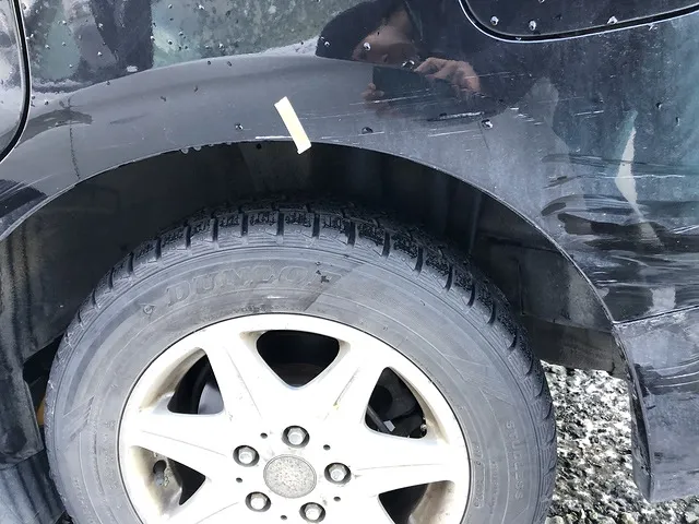 八戸市 板金塗装 Nワゴン 右前フェンダーの下 凹み修理