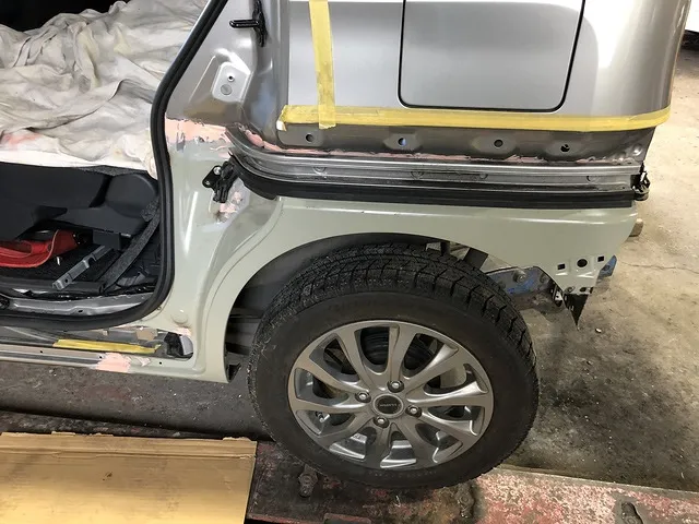 八戸市 板金塗装 スペーシア 左後ろとゲートをぶつけてしまった事例