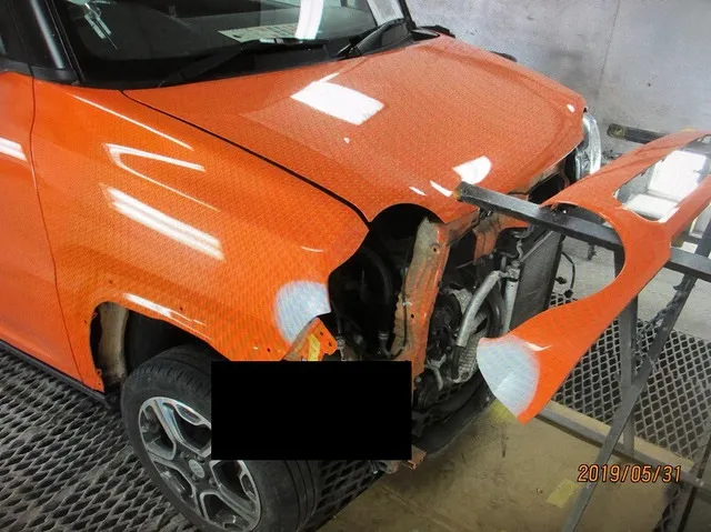 八戸市 板金塗装 パレット 左前の大きな損傷 フロントバンパー ライト フェンダー修理