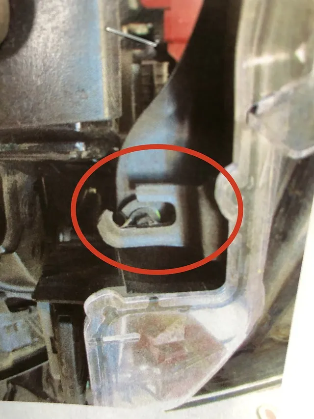 フロントバンパー周りにボンネット、赤く丸をした所はヘッドライトの一部分なのですがプラスチックの部品が割れています。ヘッドライトは車検の際に光軸を調整するのですが、このよう車体にヘッドライトを固定している部分が割れたりしていると光軸が合わせれないという事になったりして車検が通らない何てこともあり得ますので慎重に判断しなければなりません。何度も書きますが、今回は保険修理なので少しでも壊れていたら新品に交換です。自腹で直すとなると何でもかんでも新品に交換では今回みたいにとんでもない金額になってしまいますから自腹の時は機能に問題なかったりお客様に相談してちょい傷なら直さないというパターンもあります