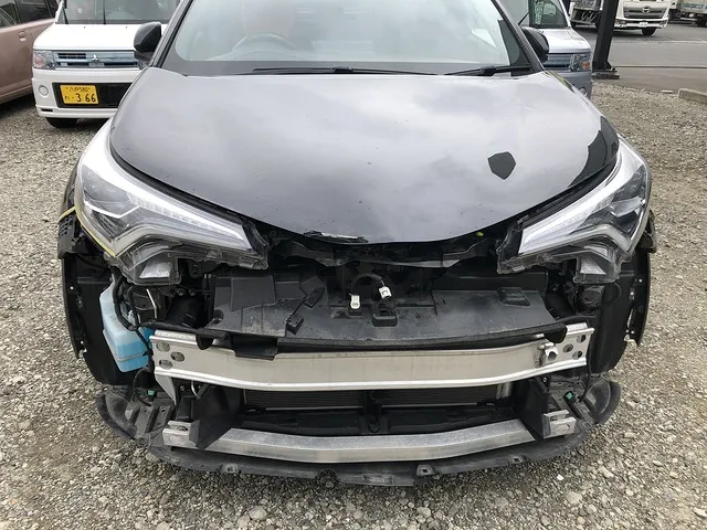 トヨタのCH-Rの前側を大きくぶつけてしまった修理事例です。お客様の要望によりほぼほぼ新品に交換です。保険修理のため金額は参考までにです。これくらい大きく壊れていても時間とお金をかければ直るとも言えますね