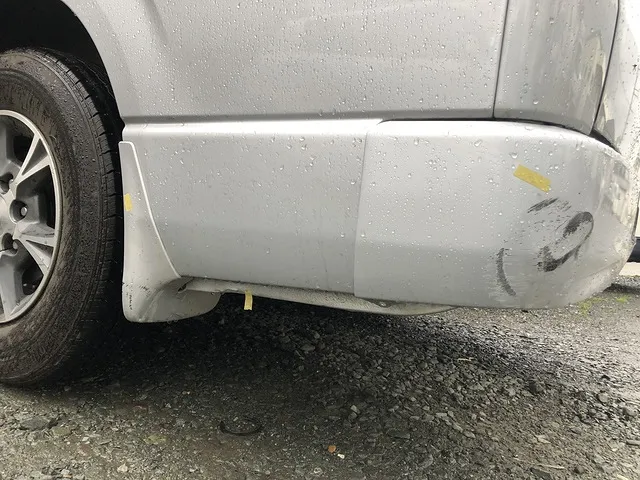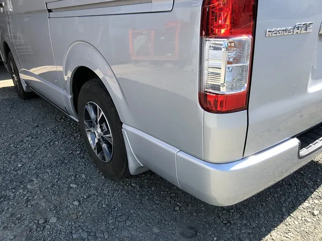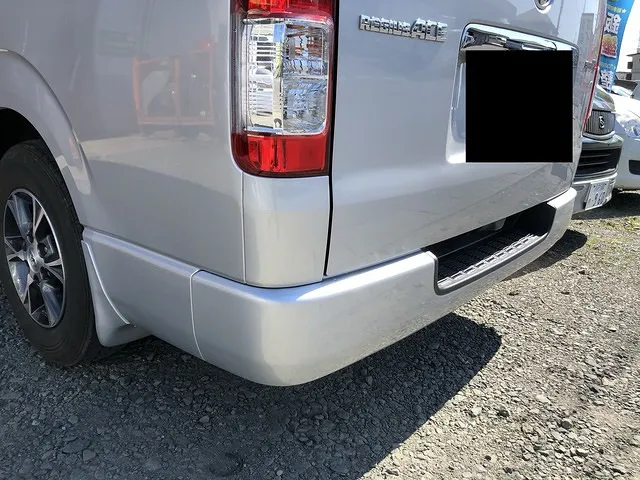 トヨタの人気車ハイエースのリアバンパーの角の修理事例です。会社関係からも支持され続けるハイエース、それでは作業工程はこんな感じです。