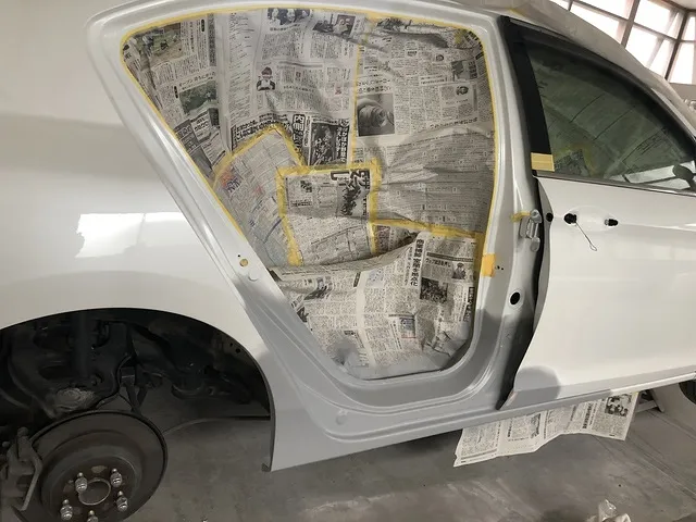 溶接しましたら研磨して脱脂後に乾燥させ、凹凸を埋めるパテで車体本来の曲線を補い再現するように研磨し、塗装下地のサフェーサを吹き付け乾燥後、再度丹念に研磨してから塗装して磨きます。塗装やサフェーサを吹き付ける際は紙を貼るマスキングという作業をします