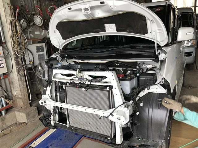 八戸市 板金塗装 スペーシア フロントバンパー ラジエーターコア 修理 前をぶつけてしまった事例