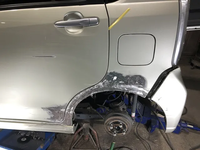 八戸市 板金塗装 スペーシア 左後ろとゲートをぶつけてしまった事例