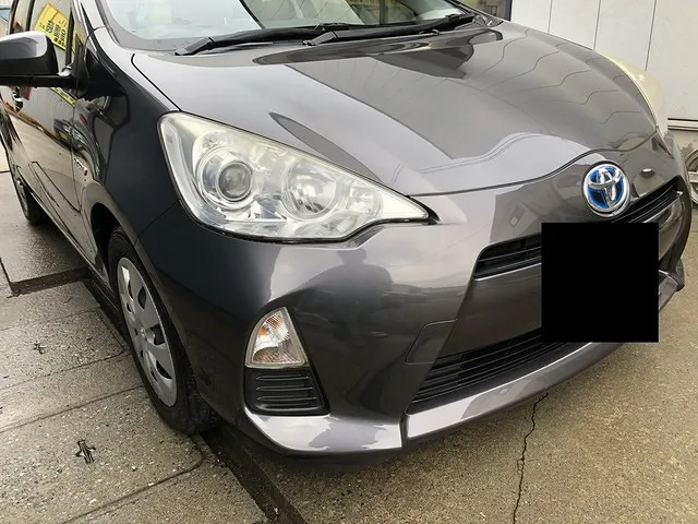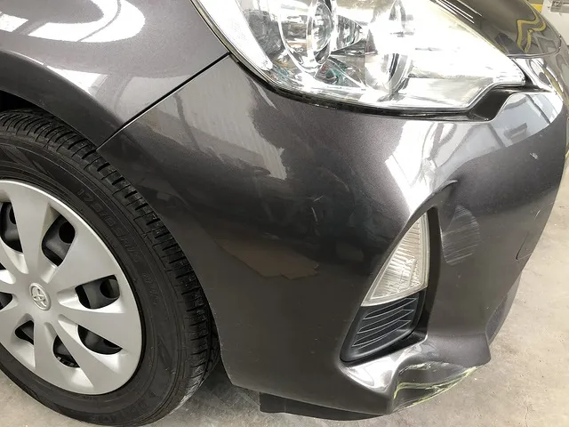 トヨタのアクアのフロントバンパーの凹み傷修理の事例です