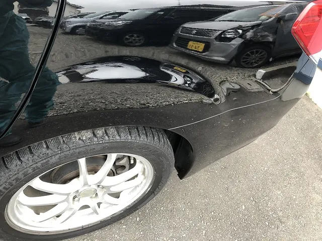 八戸市 板金塗装 スカイラインハイブリッド リアフェンダーの凹み ドアの傷修理