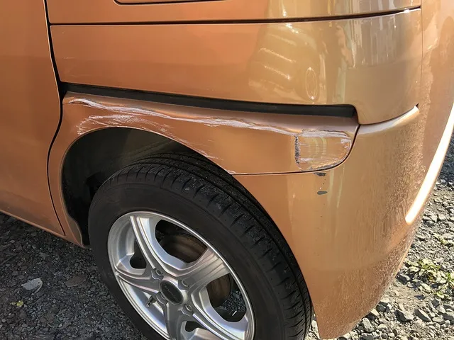 八戸市 板金塗装 N-BOX 左後ろの損傷 リアフェンダー、スライドドア付近の擦り傷