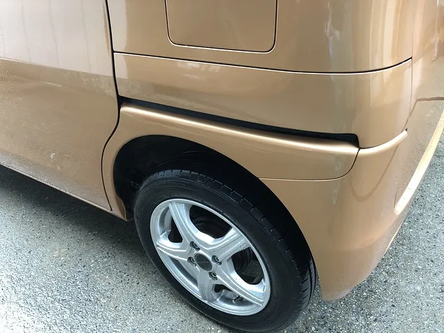 八戸市 板金塗装 ジャスティ 右後ろのタイヤ付近を擦ってしまった修理事例