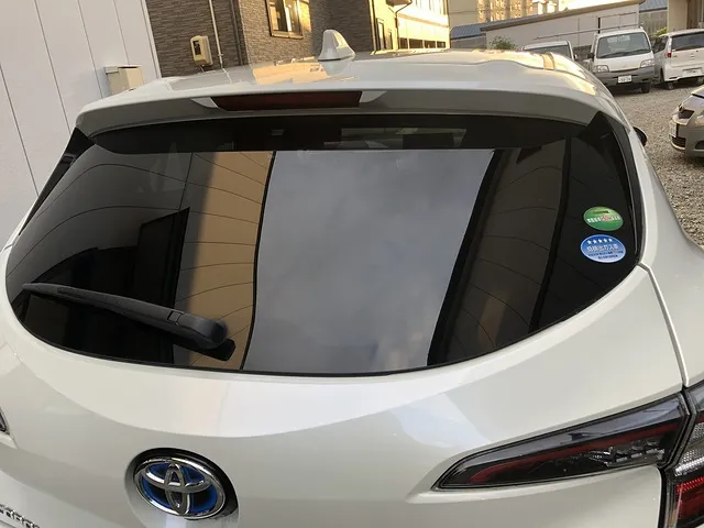 トヨタのカローラスポーツの後ろのスポイラーを電動シャッターにぶつけてしまい、ちょっとした傷が付いてしまったという修理事例です