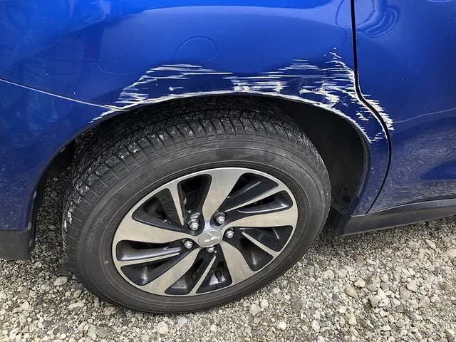 八戸市 板金塗装 フォレスター ドアの大きな凹みを新品に交換 タイヤの傷