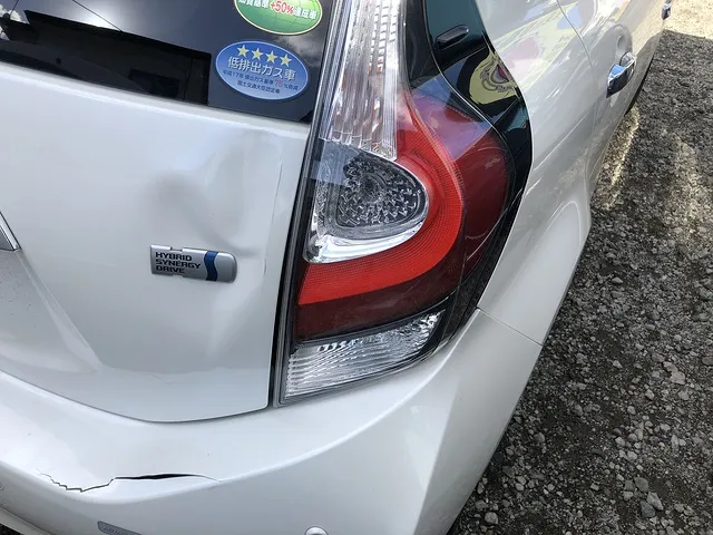 トヨタのアクアのゲートの凹みとリアバンパーの割れの事例です