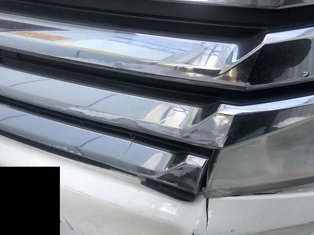 フロントバンパー、ラジエーターグリル、ヘッドライト交換、内部損傷鈑金修理
