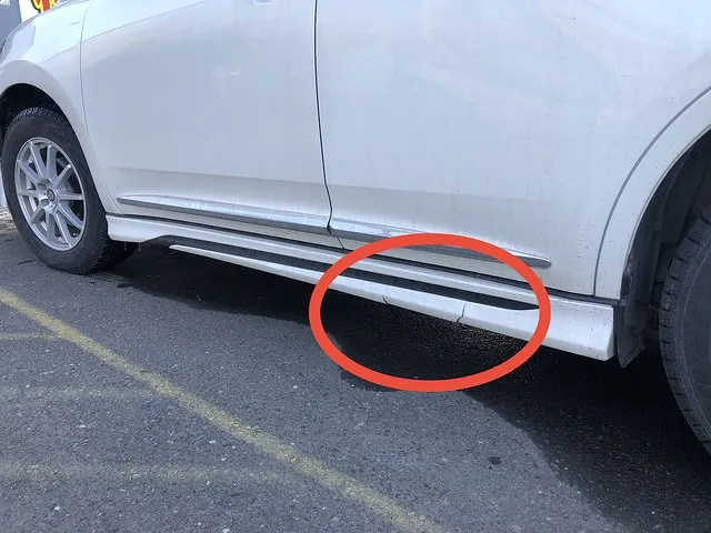 トヨタのハリアーのフロントとサイドスポイラーの割れを新品に交換するという事例です