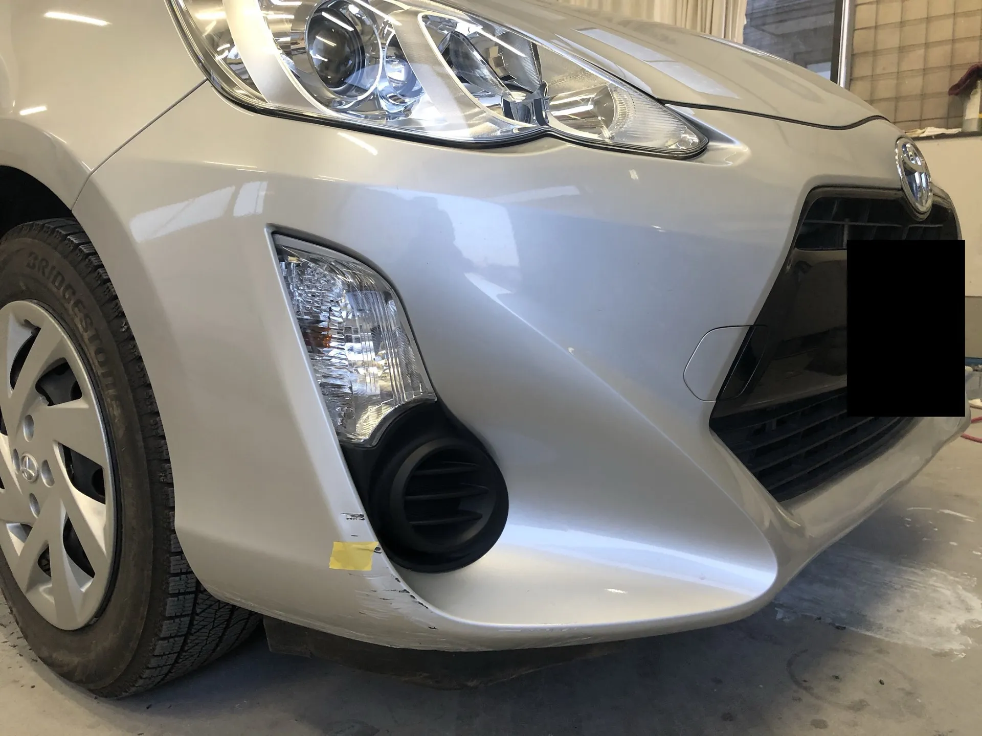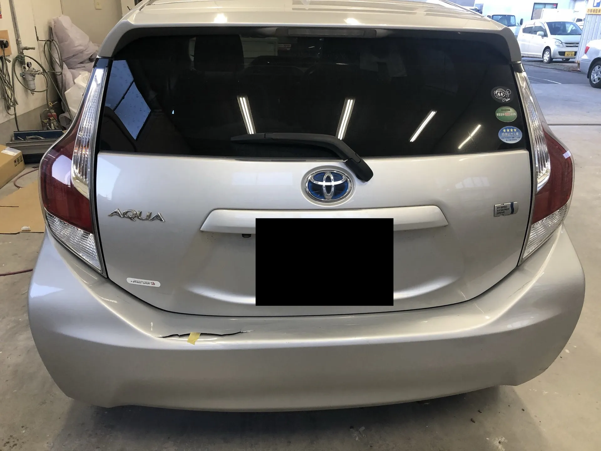 八戸市 八戸市 板金塗装 アクア フロントバンパーの擦り傷とサイドシルの凹み、リアバンパーの割れ 谷川自動車