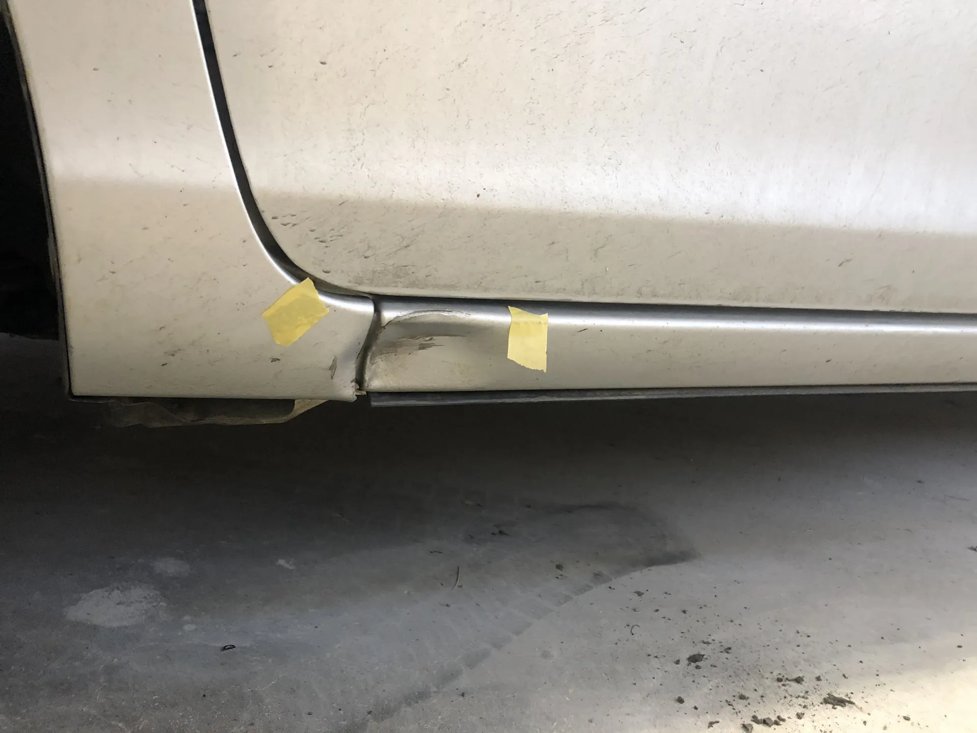 八戸市 板金塗装 インプレッサ サイドスポイラーの傷とサイドシルの凹み