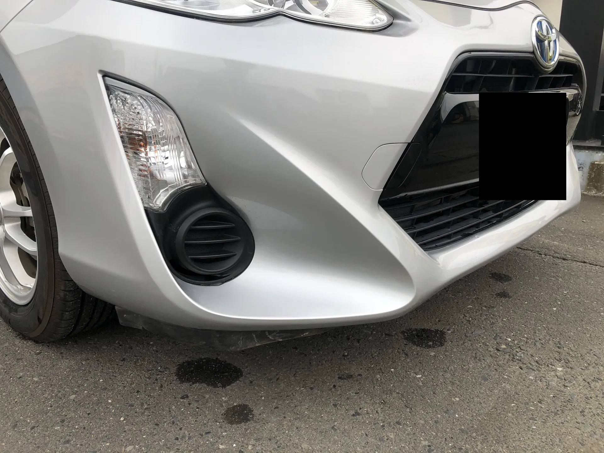 トヨタのアクアのフロントバンパーの擦り傷とサイドシルの凹み、リアバンパーの割れの事例です