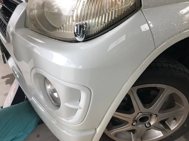 スズキの根強い人気のあるKeiですが、フロントバンパーに少し傷がありますのでこちらを修理していきます