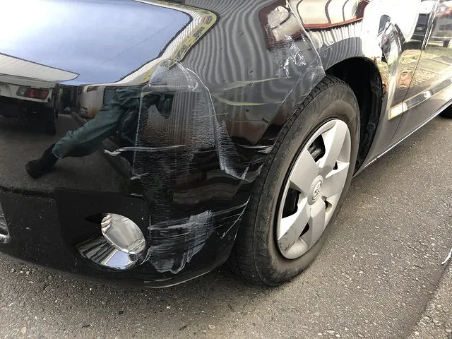 フロントフェンダー、フロントバンパーの擦り傷と変形修理