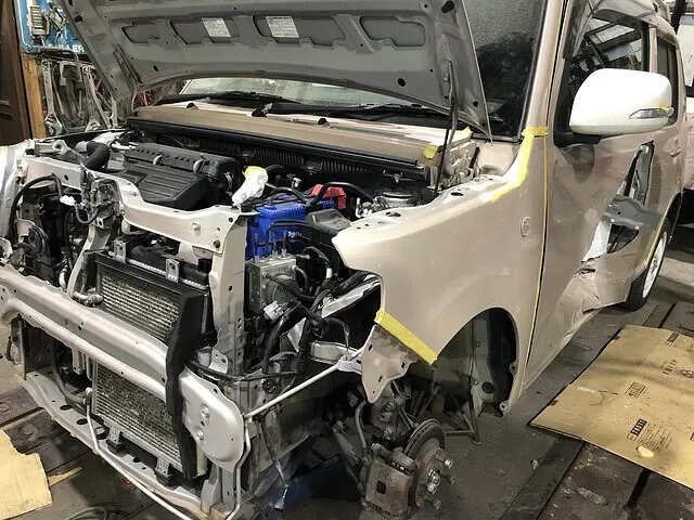 八戸市 板金塗装 N-BOX 前をぶつけてしまった修理事例 内部損傷あり