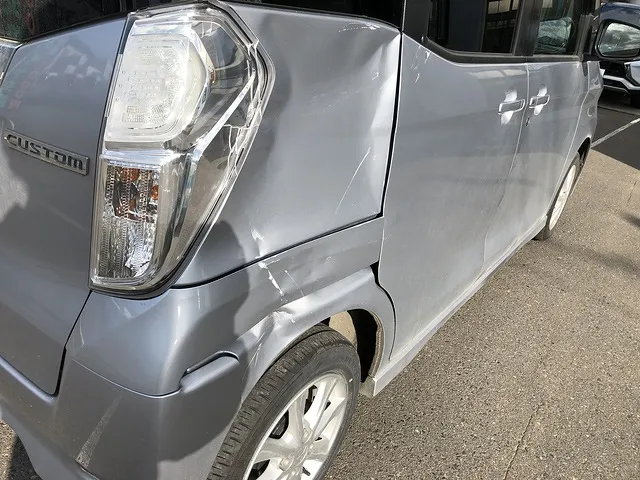八戸市 板金塗装 スペーシア 左後ろとゲートをぶつけてしまった事例