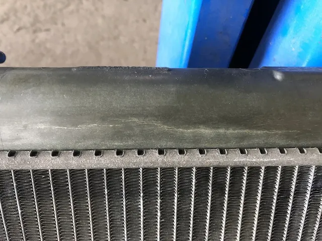 冷却水の入っている部分をラジエーターというのですが樹脂製なので経年劣化なのか?お車をぶつけたことがあるのかわかりませんが、このように亀裂が入ってきたりします