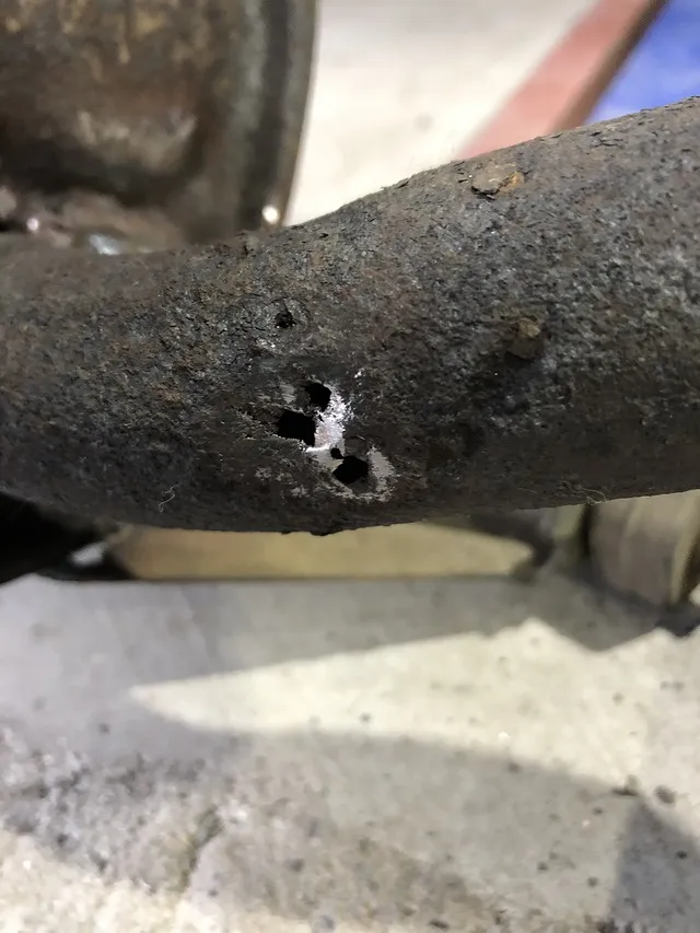 八戸市 マフラー、フレームの穴修理 キャリー マフラーの穴と継ぎ目の溶接修理