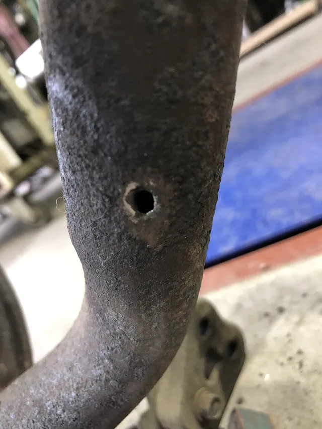 八戸市 マフラー、フレームの穴の修理 サンバーディアスクラシック フレームの穴