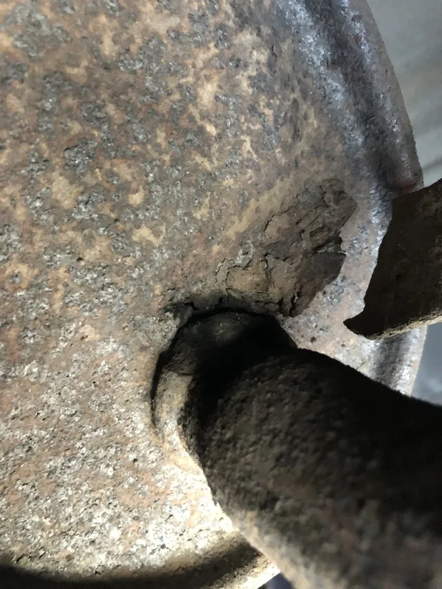 八戸市 車のマフラー、フレームの穴の修理 ノート 連結部分の付け根の取れ