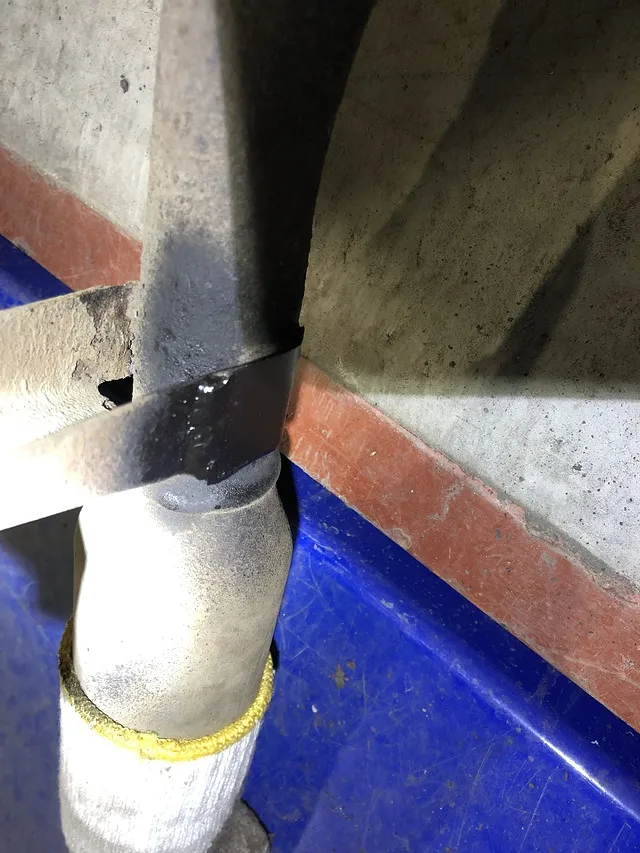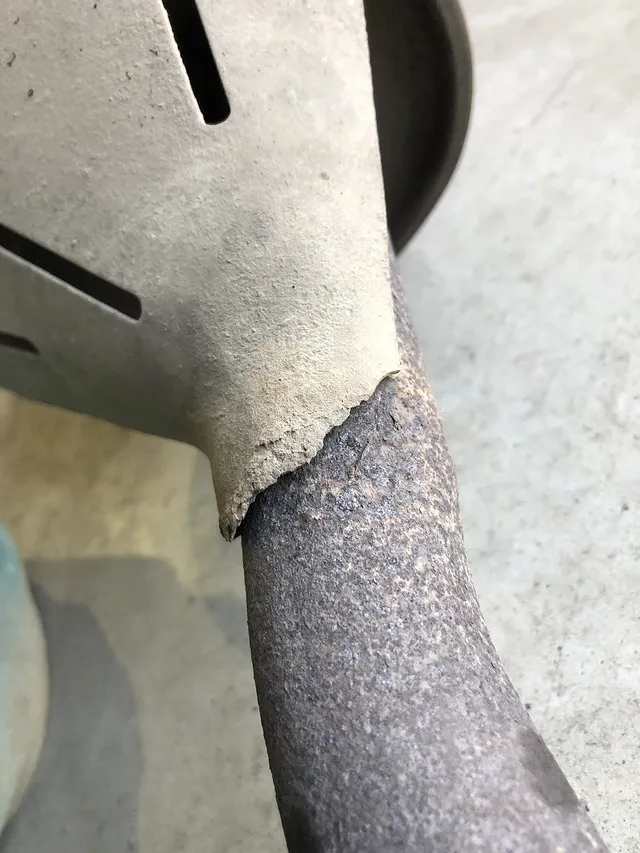 マフラーを外して、溶接する箇所を削って溶接をくっつきやすくします