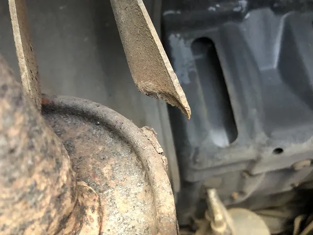八戸市 マフラー、フレームの穴の修理 アウトランダー マフラーの連結部分の腐食
