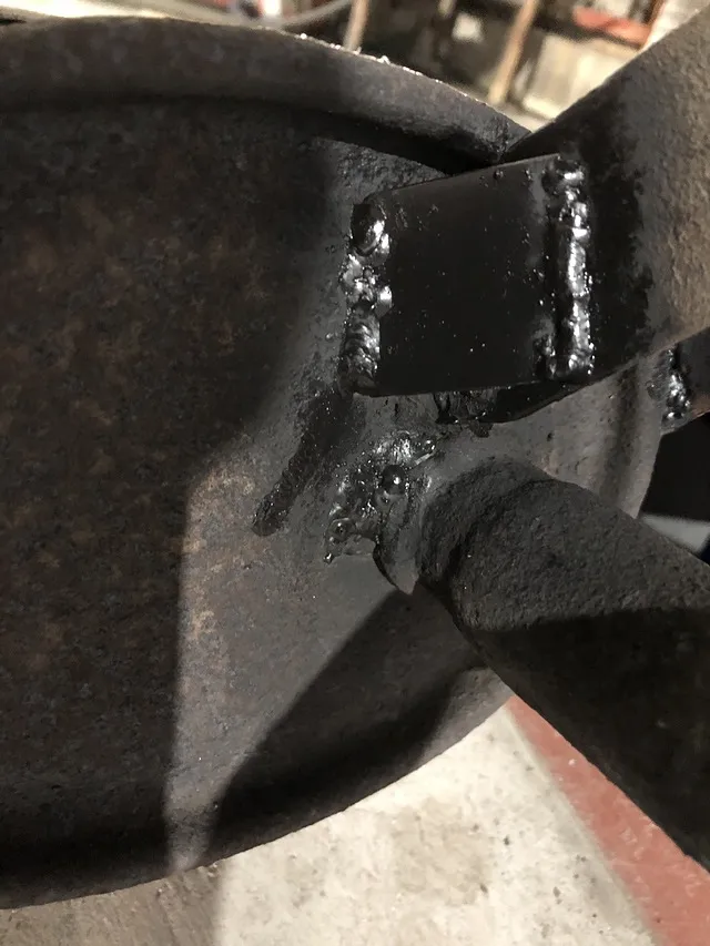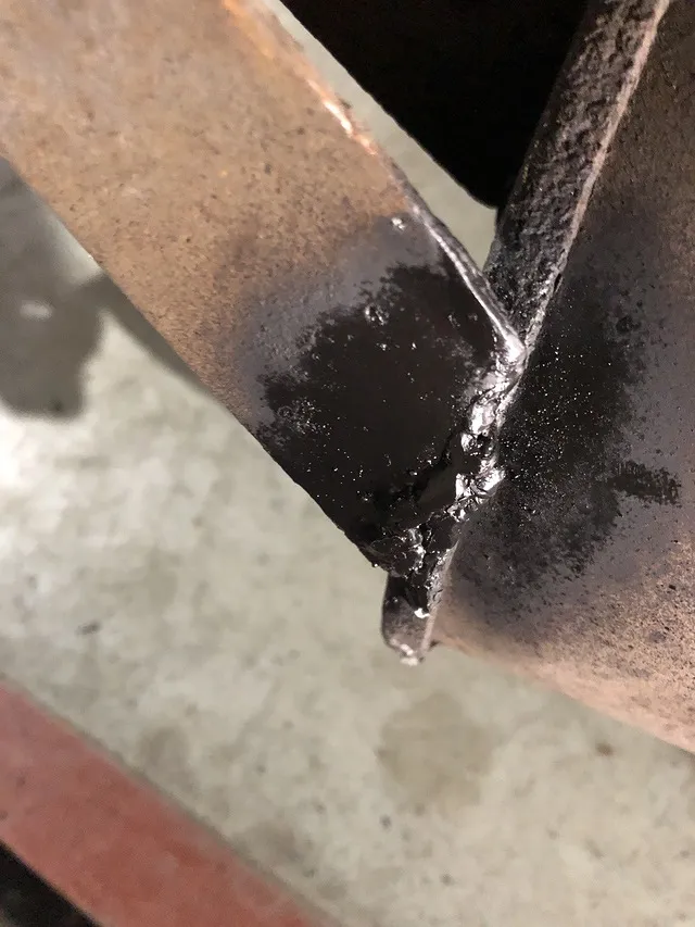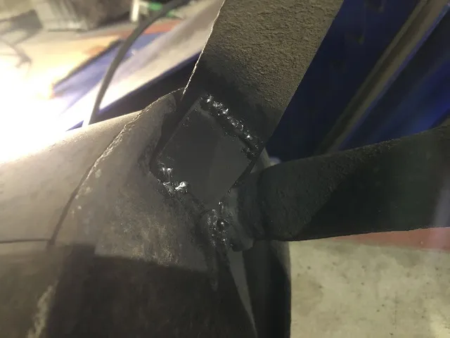 マフラーの穴はマフラー自体の鉄板が薄いので少しづつ穴を埋めていきます。溶接の熱で簡単に穴が広がってしまうので少しづつ埋めていきます