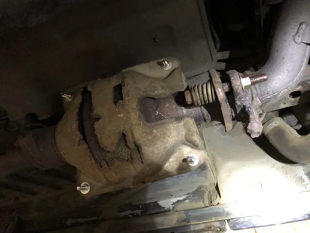 八戸市 マフラー、フレームの穴の修理 ミニキャブ 荷台の下のフレームの穴1箇所を溶接修理