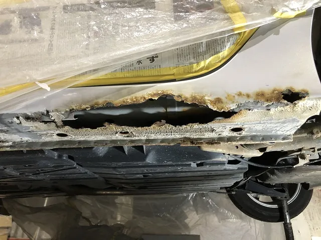 サイドシルの腐食を補強溶接して塗装を2箇所