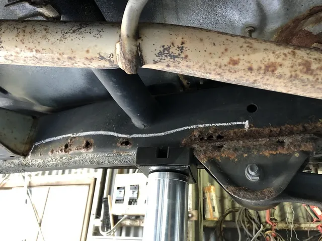 八戸市 マフラー、フレームの穴の修理 ミニキャブ 荷台の下のフレームの穴1箇所を溶接修理