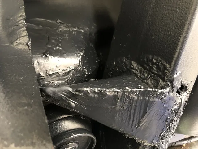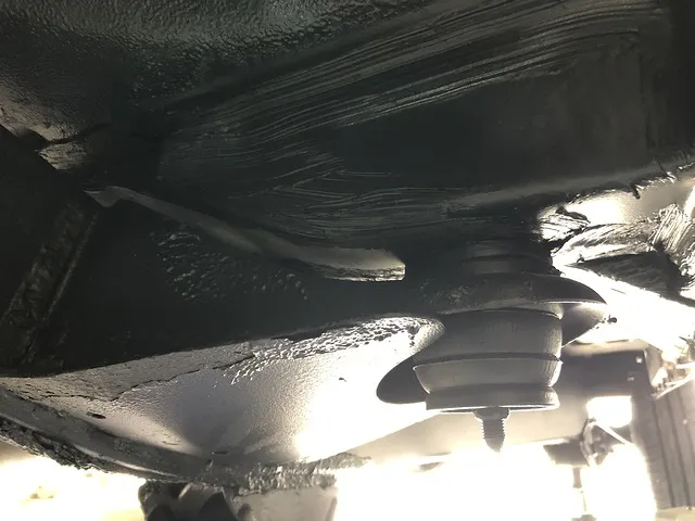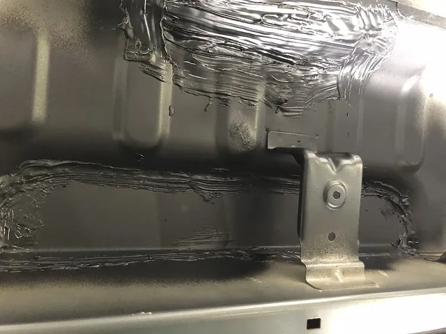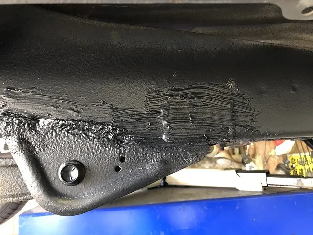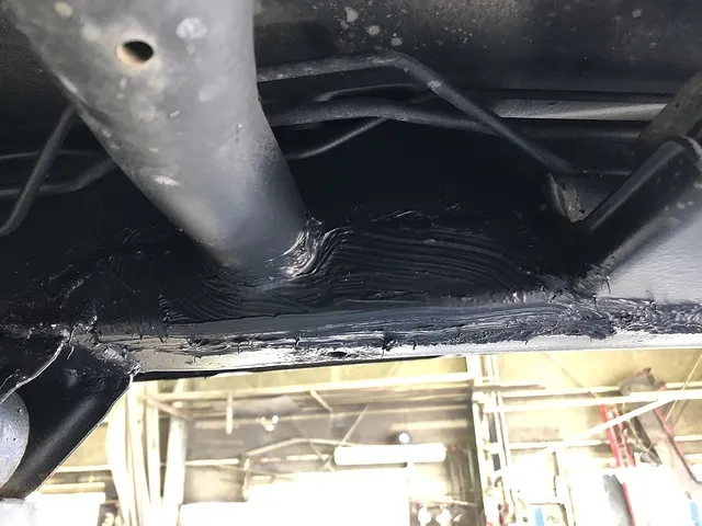溶接箇所には可能な限りシーリングをして水が入らないようにし、腐食していかないようにチッピングコートという黒い防錆剤を吹き付けています。