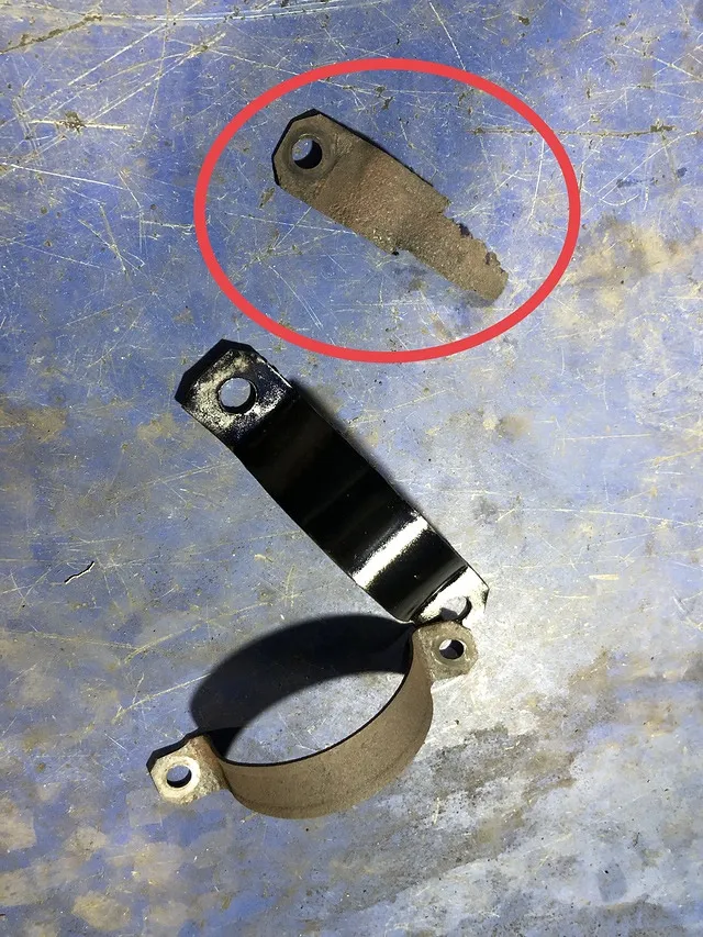 八戸市 マフラー、フレームの穴の修理 ミニカ マフラーの取れ